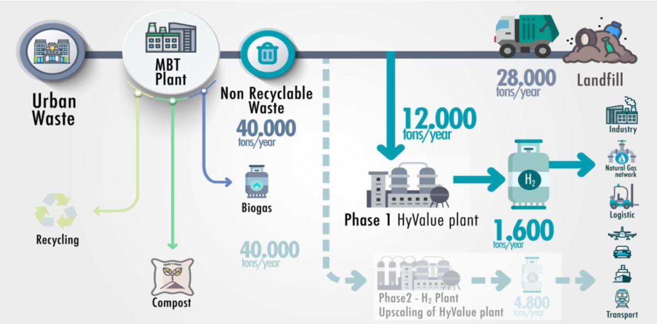 HYVALUE: Novel upcycling production process, based on an innovative circular business model, for high-quality hydrogen production through urban waste streams valorisation